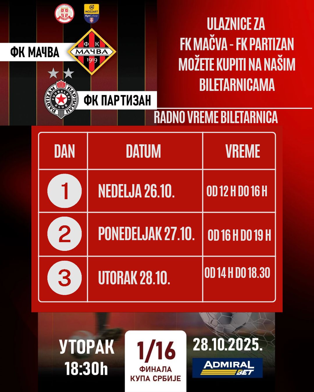 Zbog velikog interesovanja, ulaznice možete kupiti i dva dana pre meča!