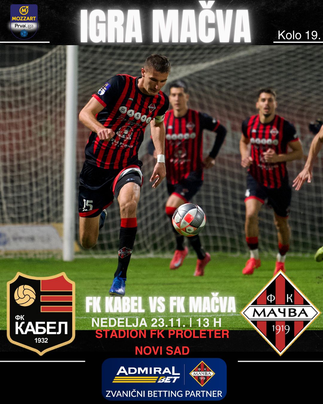 Utakmica 19. kola Mozzart Bet Prve lige Srbije zakazana je za nedelju 23. novembar sa početkom u 13 časova. Na stadionu FK Proleter u Novom Sadu, fudbaleri Kabela dočekaće Provincijski Urugvaj.